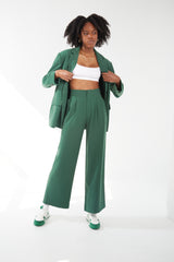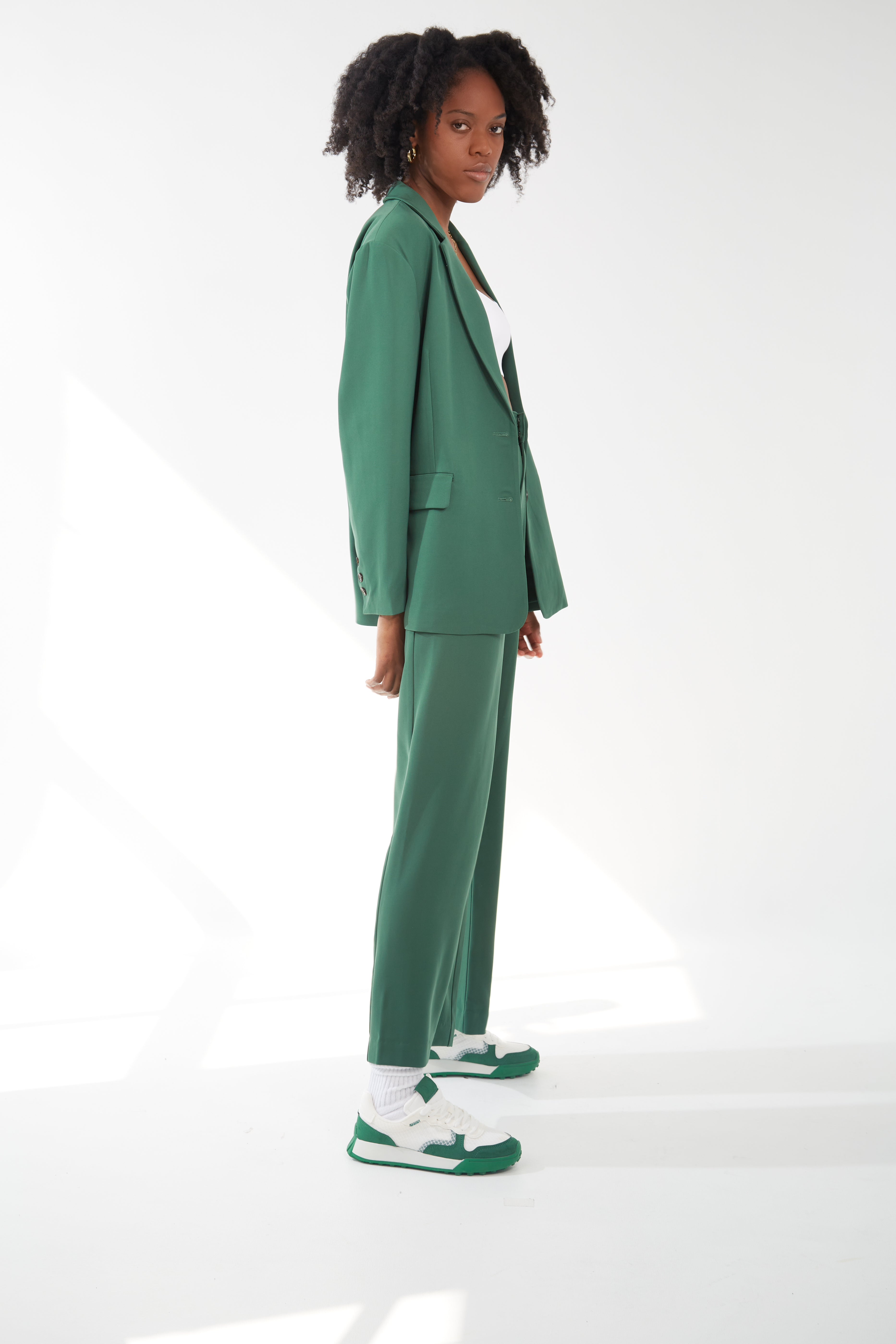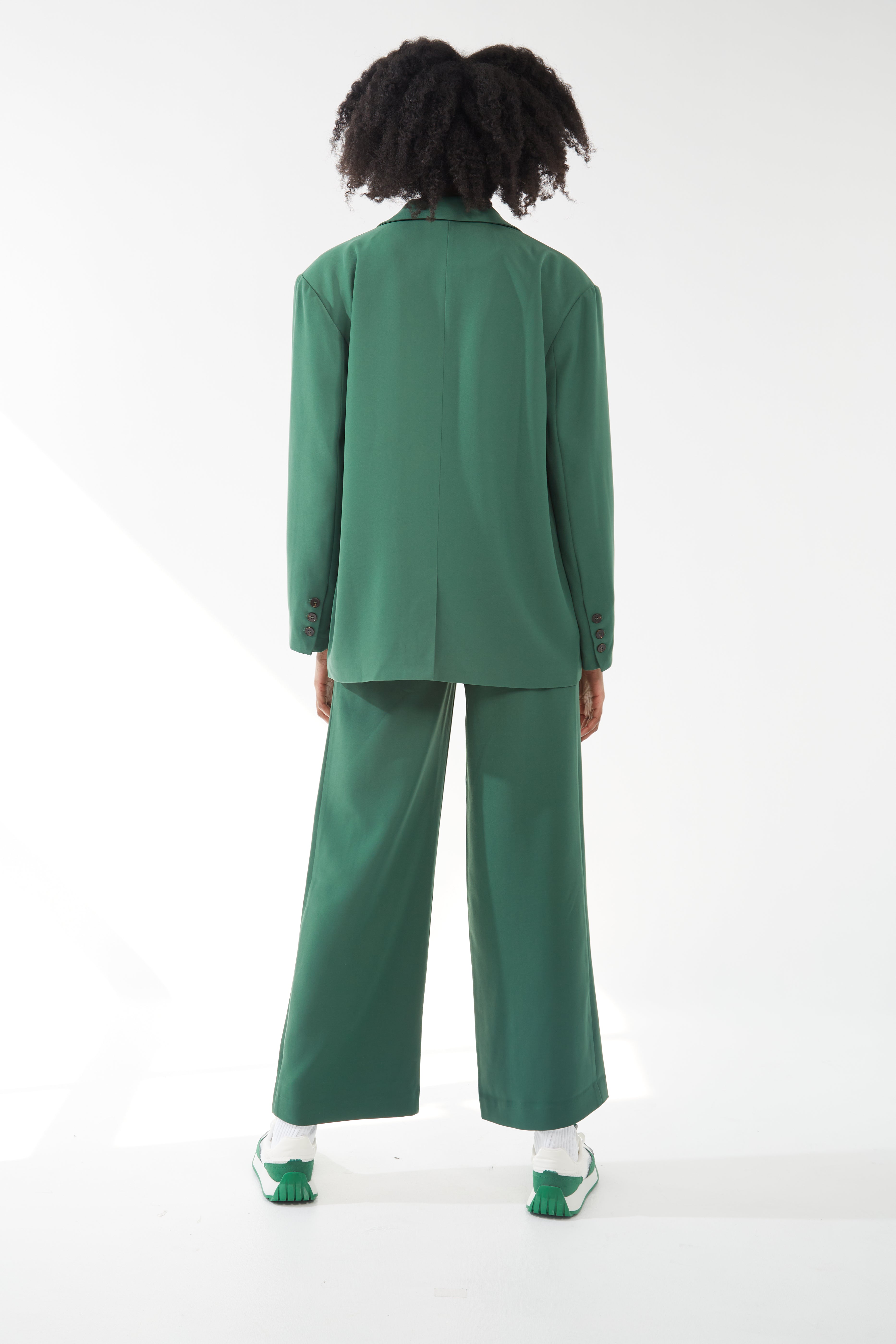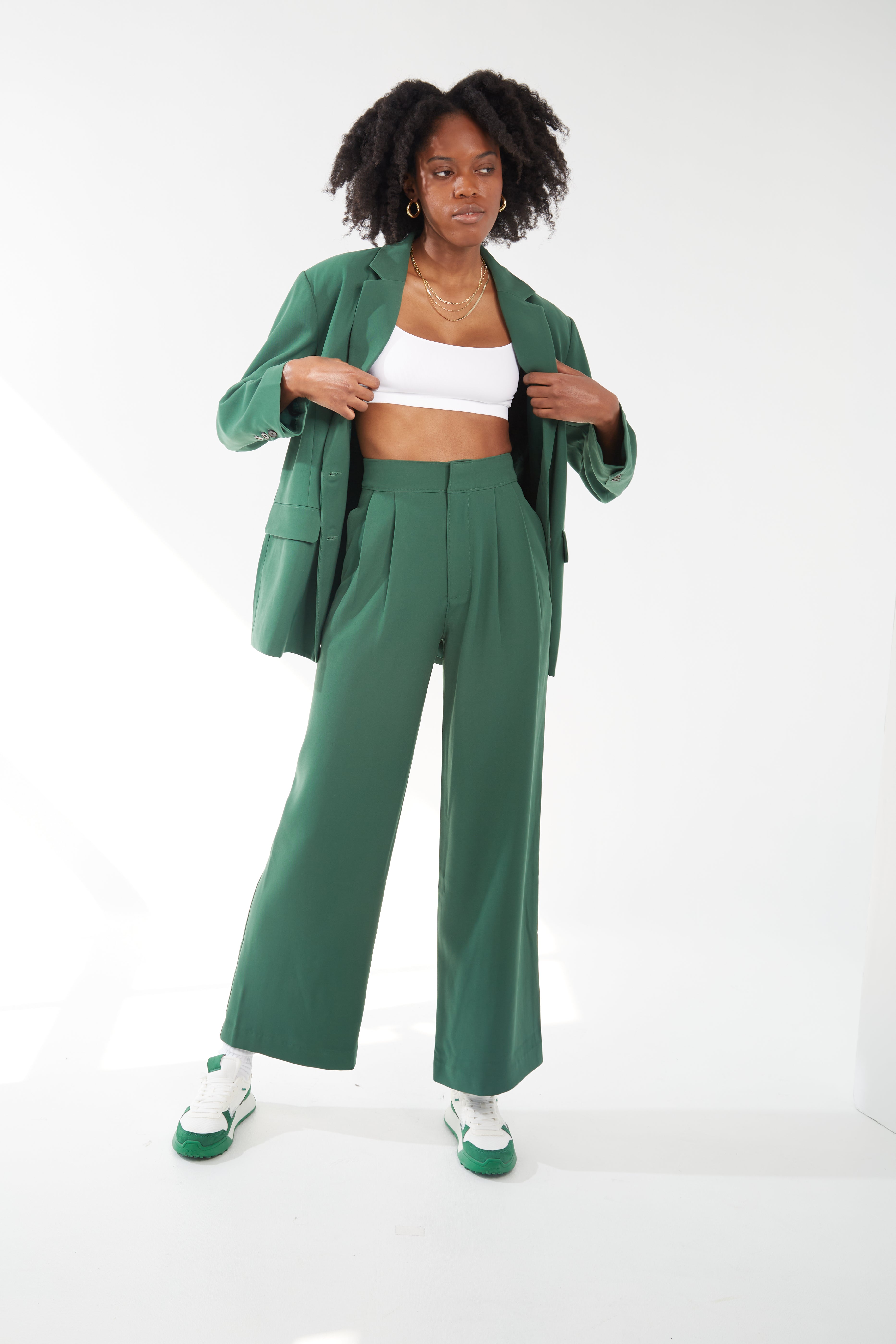 This oversized, single-breasted blazer is the perfect transitional piece that will complement any outfit ensemble. The gabardine fabric and clean finished interior add up to the elevated quality of this blazer. Pair the blazer with the matching Pleated Wide Leg Trousers for an effortless co-ord look.