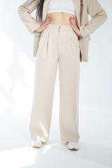 Pleated Wide Leg Trousers - Stone