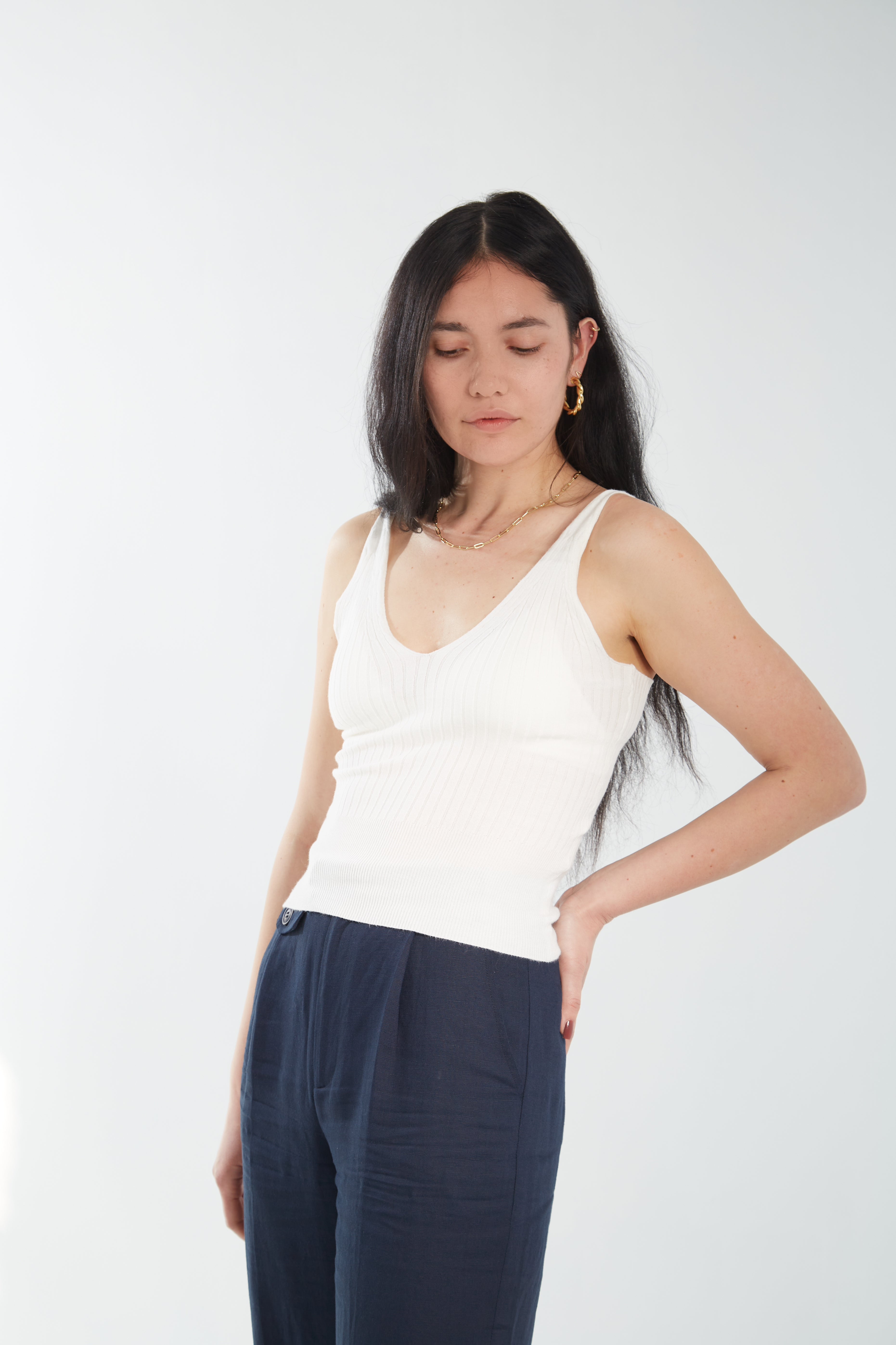 Ribbed Knit Tank - White